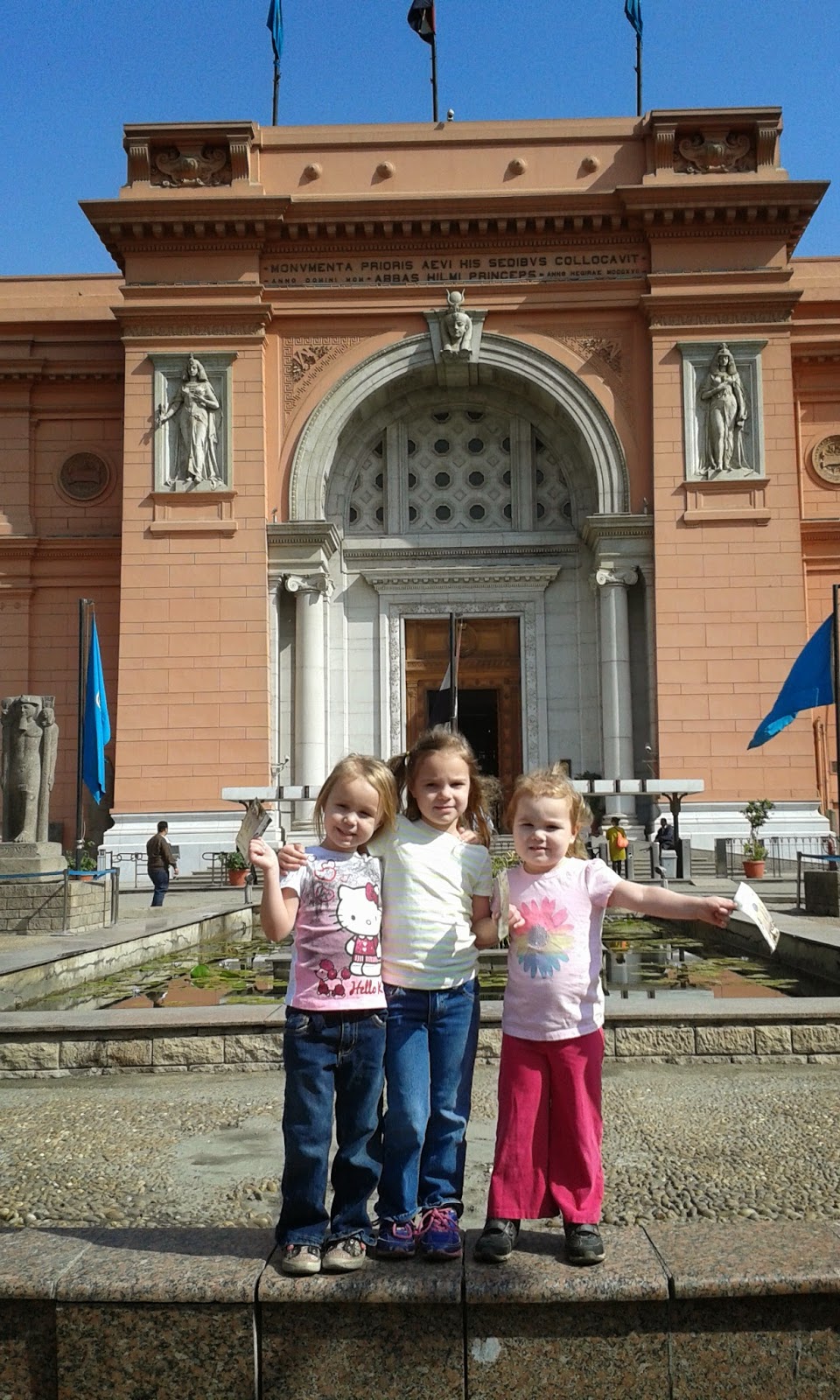 We spent a recent morning in The Egyptian Museum of Antiquities! The museum is located on Tahrir Square, the physical center of Egypt's revolution. After walking through barbed wire fencing and past lots of armored tanks and soldiers we made our way to the entrance of this grand, salmon-colored building.